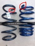 This part is interesting. So remember the picture UP posted showing a properly installed spring versus an improperly installed spring? The proper one had the lower coils separated with even spacing which the improper springs had coil bind where the coils would touch effectively making the dual rate design irrelevant. I voiced this concern and they said mine didn't look so bad and that it doesn't effect the functionality of the spring. In a nutshell, they seemed to have turned back on their original description. Check out the pictures I uploaded labeled "AUG UPDATE" It clearly shows the 1, the strut is off center relative to the springs, and 2, the spring is bowed, and 3, I believe the cause is because the top of the UP coil ends at a different spot on the strut mount when compared to OEM springs which probably resulted in the bow and uneven spring compression...leading to noises and mediocre spring performance.